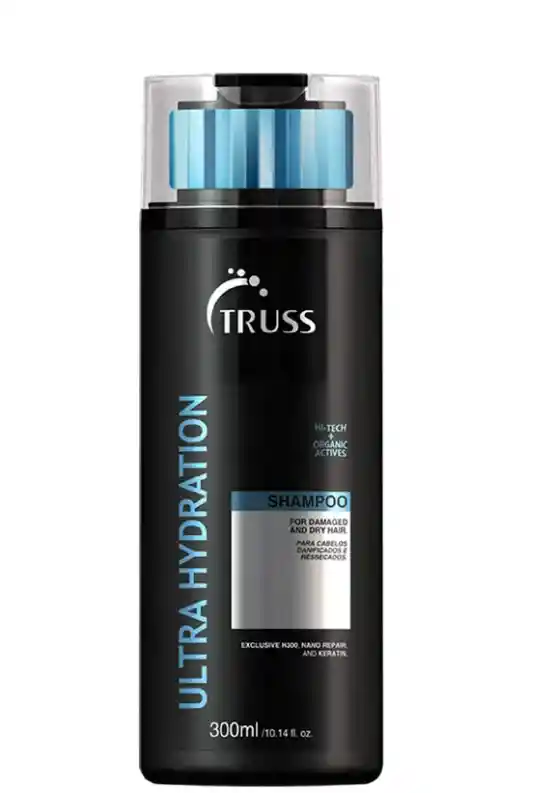 El Truss Shampoo Ultra Hydration 300ml es un producto de cuidado capilar diseñado para proporcionar una hidratación intensiva al cabello sediento y deshidratado. Este champú está formulado con ingredientes especiales que ayudan a restaurar y retener la humedad en el cabello, dejándolo suave, manejable y con un aspecto saludable. Beneficios: Hidratación Profunda. Reparación. Limpieza Suave. Suavidad y Facilidad de Peinado. Brillo y Vitalidad. Modo de Uso: Moja completamente el cabello. Aplica una cantidad adecuada de Truss Shampoo Ultra Hydration en el cabello y el cuero cabelludo. Masajea suavemente el cuero cabelludo con las yemas de los dedos, haciendo espuma. Enjuaga bien con agua tibia hasta que todo el champú se haya eliminado por completo. Para obtener los mejores resultados, sigue con el acondicionador o tratamiento adecuado.