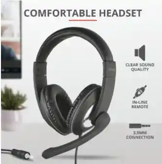 Diadema Audífono con Micrófono Trust Reno PC y Laptop + ConvertidorCómodo juego de auriculares circumaurales con control para el volumen incorporado en el cable y micrófono ajustableEspecificacionesGeneralAltura del producto principal (en mm) 190 mmAncho del producto principal (en mm) 180 mmProfundidad del producto principal (en mm) 70 mmPeso total 178 g.ConectividadTipo de conexión cableadaEstilo de conector rectoEstilo de cable redondoLongitud del cable cable principal 180 cm.Tipo de conector 3.5 mm