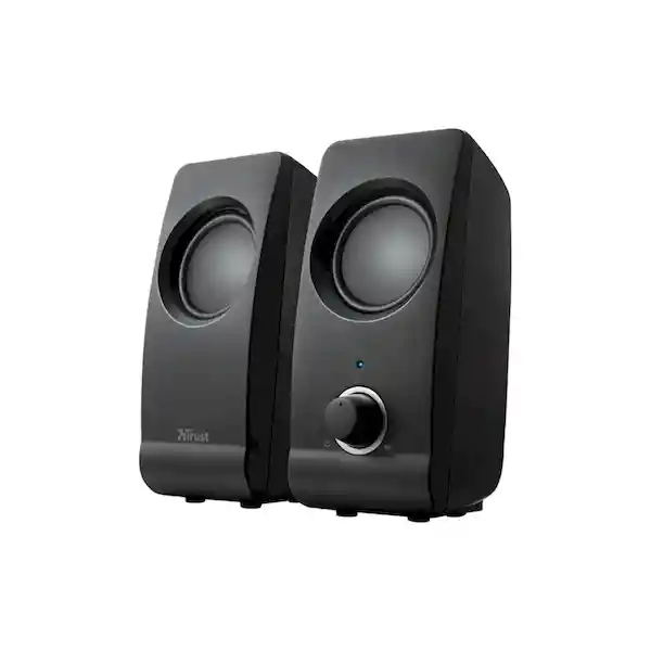 Compacto juego de altavoces estéreo con potencia de salida RMS de 8 Vatios (16 vatios de potencia máxima). Tecnología avanzada para disfrutar de un sonido rico y potente Alimentado por USB - no requiere alimentación eléctrica Úselo en cualquier parte, también fuera del hogar o la oficina Mando del volumen grande y de fácil acceso en la parte delantera