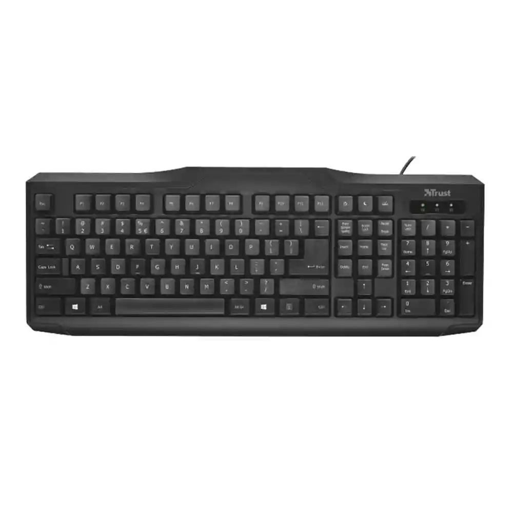 Teclado Trust Classicline; Usb; Ofrece Protección Ante la Caída de Líquidos; 107 Teclas de Tamaño Completo y Teclado Numérico Para Facilitar la Escritura; 3 Teclas Especiales Para Encendido; Activación y Suspensión; Puede Variar Según el Sistema Operativo; Indicador de Mayúscula; Teclado Numérico y Scroll. Cable de 180 cm de Longitud. Compatible Con Windows; Macos 10.15 (Catalina) o Superior; Chrome Os; Apto Para Pc y Portátiles. Garantía 1 Año Conexión Alámbrica Largo Cable 180 cm Tipo Conector Usb 1.0 Número de Teclas 107 Indicador de Mayúscula si Teclas de Encendido; Inactivar y Activar Resistente a Salpicadura de Líquidos si Compatible Pc y Portátil