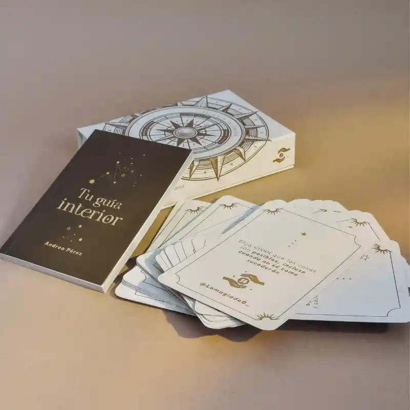 Tu Guía Interior incluye 52 cartas con afirmaciones positivas y un minibook que te ayudará a profundizar en el mensaje de cada carta mediante una reflexión y una pregunta de autoconocimiento. Una herramienta diseñada para acompañarte en tu crecimiento personal, invitándote a pausar, escucharte y transformar tu bienestar desde adentro.