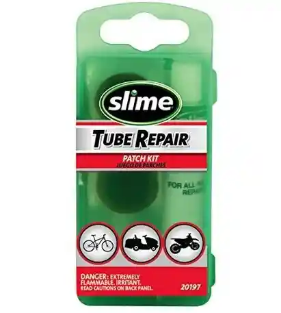 El kit de reparación contiene 6 parches de goma, papel de lija y un tubo de cemento de goma.