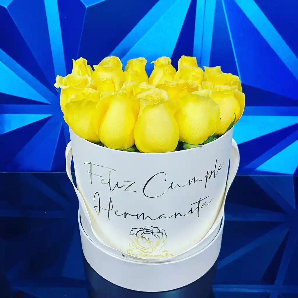 Tubular de 25 a 30 rosas (Un tono, color disponible por flores de temporada, conservando su diseño original) Caja personalizada max 3 palabras y Con mensaje personalizado max 50 caracteres, (Dejar mensaje en el chat y remitente, de lo contrario no se podra visualizar)