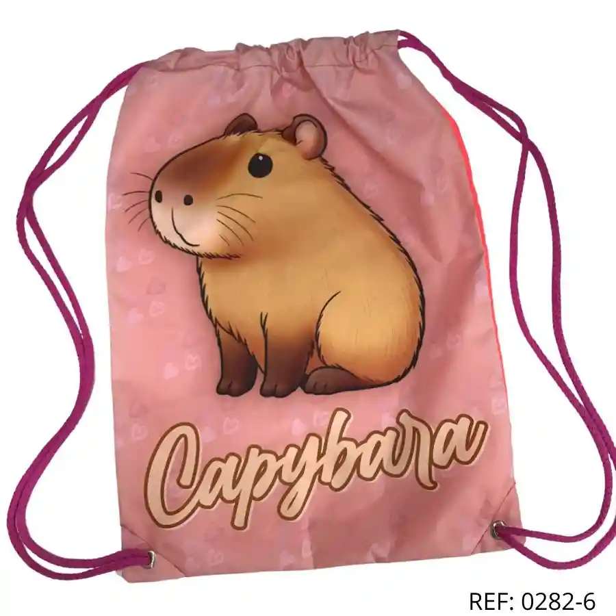 Mochila tipo saco Capibara. Estilo tierno y original, perfecta para niños o amantes de los animales.