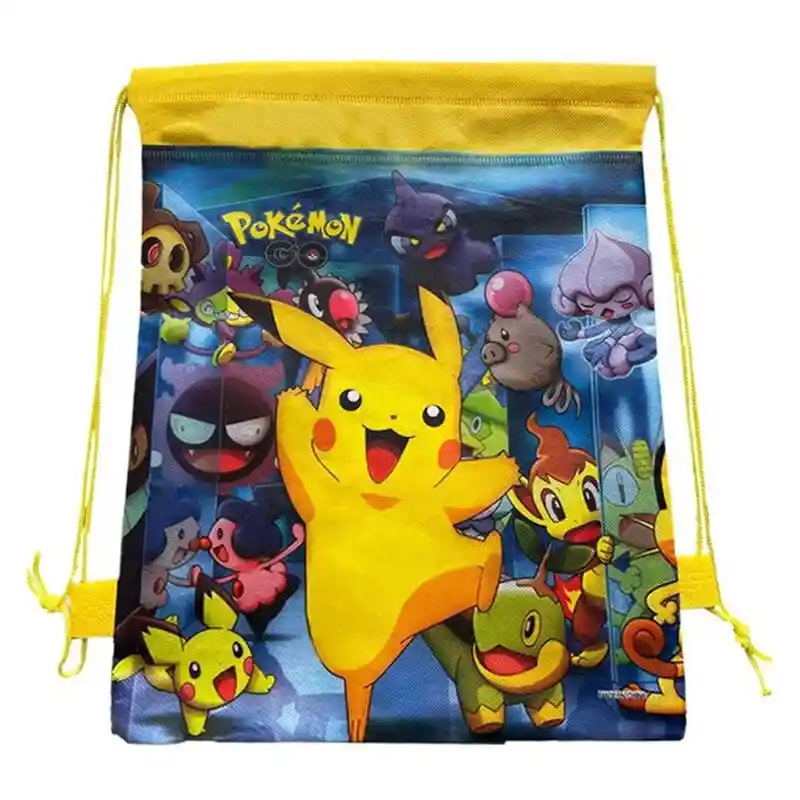 tulas (mochilas de cordón) con diferentes diseños coloridos y llamativos, inspirados en personajes populares de películas, series animadas y temas infantiles, Cada tula tiene un diseño vibrante con cordones ajustables, ideales para niños y niñas que buscan llevar sus pertenencias con estilo.