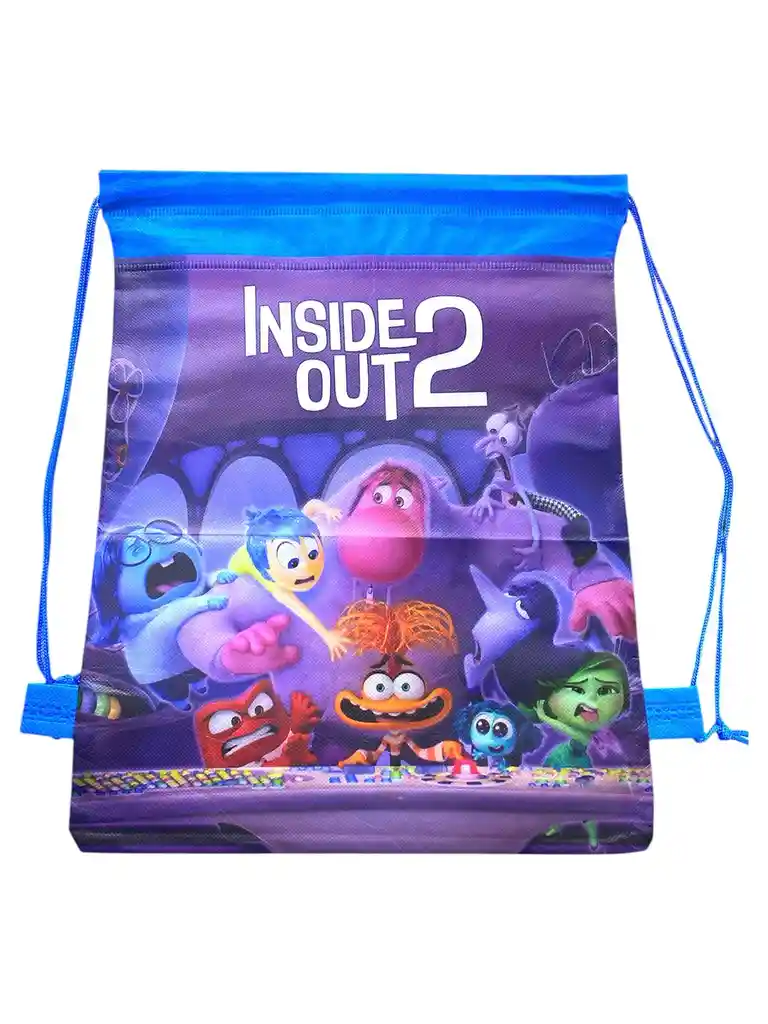 tulas (mochilas de cordón) con diferentes diseños coloridos y llamativos, inspirados en personajes populares de películas, series animadas y temas infantiles, Cada tula tiene un diseño vibrante con cordones ajustables, ideales para niños y niñas que buscan llevar sus pertenencias con estilo.