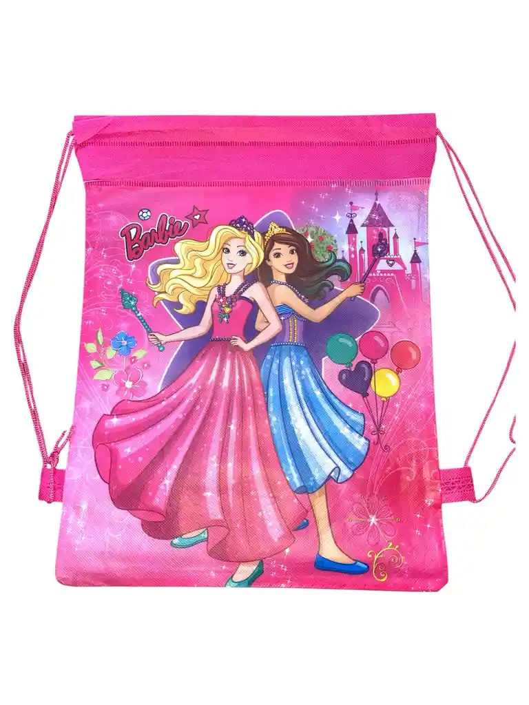 tulas (mochilas de cordón) con diferentes diseños coloridos y llamativos, inspirados en personajes populares de películas, series animadas y temas infantiles, Cada tula tiene un diseño vibrante con cordones ajustables, ideales para niños y niñas que buscan llevar sus pertenencias con estilo.