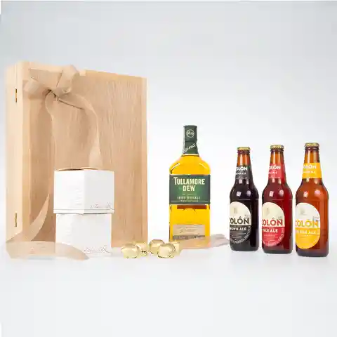 Botella De Whisky Tullamore Dew + 3 Cervezas Colon Roja - Negra Y Rubia + Trufas Estella Amor . .