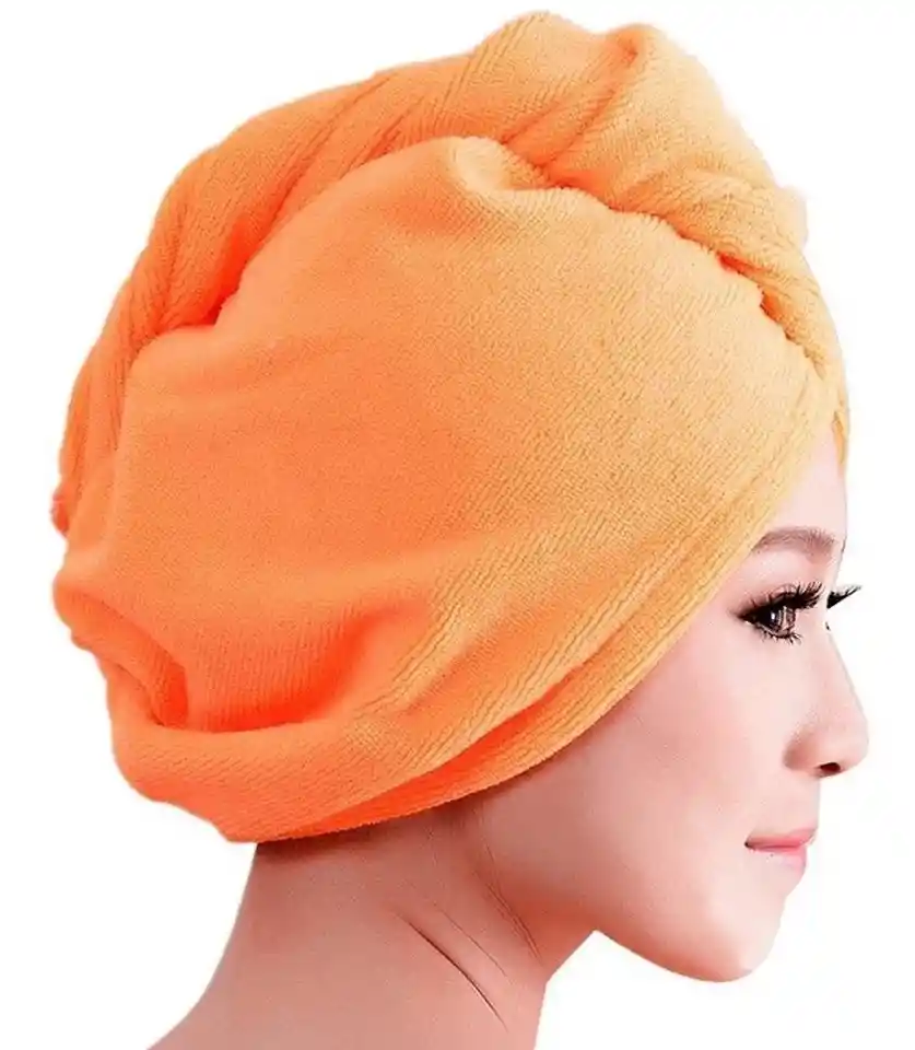 Toalla turbante de microfibra para el cabello disponible en Naranja: te permite secar el cabello de manera rápida después de la ducha lo envuelves y podrás utilizarlo al momento de una limpieza facial o para maquillarte. Características: - Esta toalla de microfibra es para secado de cabello, tiene una gran capacidad de absorción. - Úselo para secar el cabello, especialmente el largo, rápido y fácil. - Tiene botón y lazo para mantenerlo en forma segura. - Podrás maquillarte de manera mas fácil. - Instrucciones de lavado: sin suavizante, ni blanqueadores.