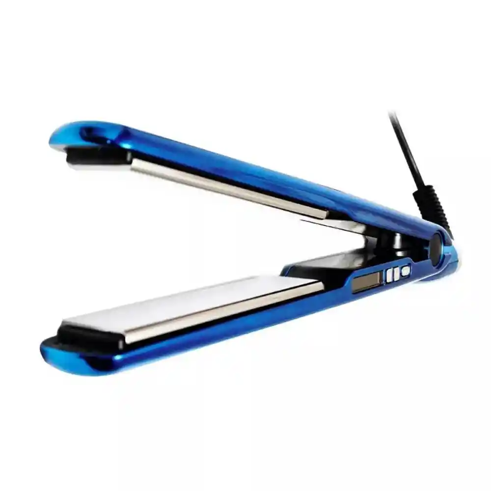 PLANCHA CIBERNÉTICA TITANIO NEW TURBOX NT-1000 Plancha delgada cromada en titanio Control digital que llega hasta 450ºF en 30¿ Apagado automático luego de 1 hora continua. Seguro para mantener cerrada la plancha. Genera iones negativos. Patines largos y flexibles en Turmalina. 110-120V Incluye tapas protectoras del patín que cuidan tus manos del calor de la plancha. Obsequio: Peinilla carbonada. El paquete contiene: 1x Plancha New Turbox NT-1000 Violet 2x Protectores de Calor para los patines. 1x Peinilla Carbonada como obsequio.