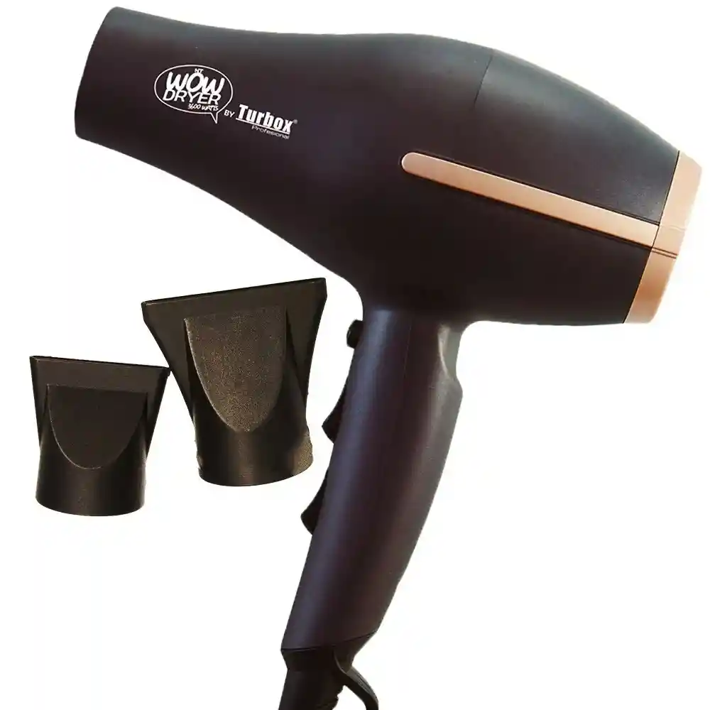SECADOR IÓNICO PROFESIONAL TURBOX NT WOW DRYER Este secador es el perfecto para uso casero y profesional, aptos para aplicación de todo tipo de Keratinas y Repolarizadores. Puede dar hasta 12 horas de uso continuo, para trabajo de estilistas profesionales, uno práctico, peso ultraliviano, y tecnología iónica. La herramienta perfecta para ti. Características: Tecnología Iónica Motor de Alta exigencia 3600 Watts Ofrece mayor temperatura y un flujo de aire mas rápido Doble resistencia ceramicada 2 velocidades 3 temperaturas Dos boquillas Voltaje: 110-127V Potencia: 3600W Medidas: 185mm x 260mm El paquete contiene: 1x Secador Iónico Wow 2x Boquillas