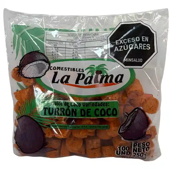 Dulce de coco: Turrón de coco, en formato bolsa x 100 UNDS