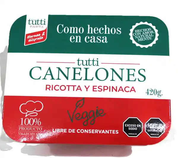 Tutti Pasta Canelones Ricotta / Espinaca