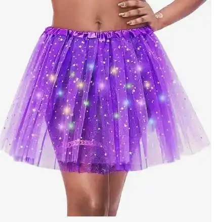 ✨ Tutú Morado LED para Mujer – Falda de Tul Iluminada Brillante Cosplay Halloween 💜🌈 Luce mágica y resplandeciente con este hermoso tutú morado con luces LED multicolor, ideal para disfraces, cosplay, fiestas temáticas, eventos nocturnos o Halloween. Su diseño de tul suave y ligero crea un efecto brillante y colorido que te hará destacar donde vayas. 💃✨ 🔹 Características: 💜 Color: Morado con luces LED 💡 No incluye pilas. Funciona con pilas reemplazables (fácil de colocar). 👗 Material: Tul suave de varias capas con pretina elástica para un ajuste cómodo. 🎭 Ideal para: Cosplay, disfraces, fiestas, presentaciones y eventos nocturnos. 🌈 Talla única, adaptable a diferentes medidas. Brilla con estilo y alegría con este tutú LED morado multicolor, perfecto para darle un toque mágico, divertido y luminoso a tu look. 🌟🎉