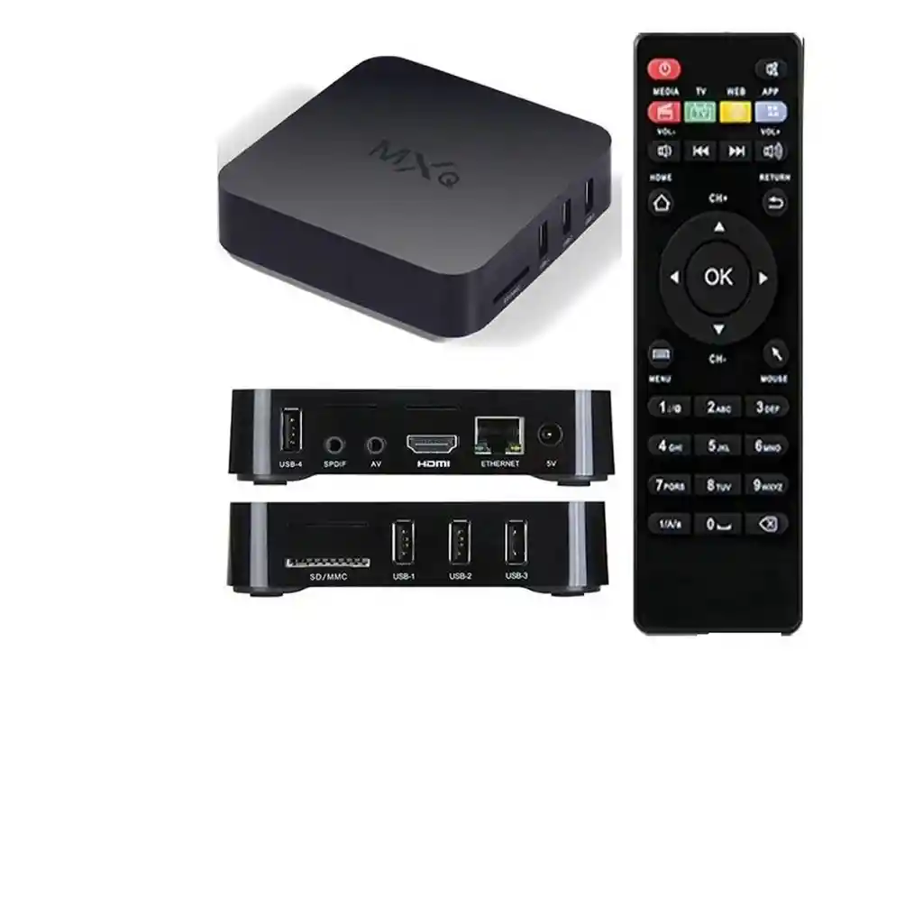 TV BOX 16GB ANDROID 11.1 WIFI DUAL BAND (2.4 GHz + 5 GHz) RESOLUCION DE 2160p (4K) PROCESADOR: ROCKCHIP RK3066A QUAD CORE 4x ARM CORTEX-A7 @1.01GHz ALMACENAMIENTO INTERNO 16GB RAM 2GB PUERTO RJ45 X 1 HDMI X1 USB TIPO A X4 AUDIO DIGITAL (SPDIF) X1 AV X1 TARJETA TF X1 CONTROL (NO INCLUYE PILAS)