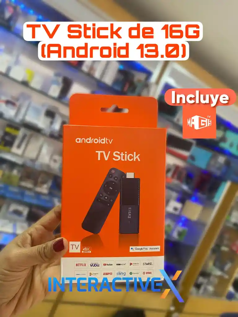 Incluye Tienda PlayStore y aplicaciones como MAGIC predeterminada El Android TV Stick R3 es un dispositivo compacto que convierte tu televisor en una Smart TV. Con 16GB de almacenamiento, acceso a aplicaciones y servicios de streaming, y resolución Full HD, disfruta de un entretenimiento completo en tu pantalla. Conectividad HDMI, USB y ranuras para tarjetas de memoria. FICHA TECNICA: • 🖥️ Memoria ROM 16GB • 💻 Memoria RAM 2GB • 📱 Android 11.1 • 🕹️ Incluye Control Remoto • 📡 Sistema de Duplicidad de pantalla