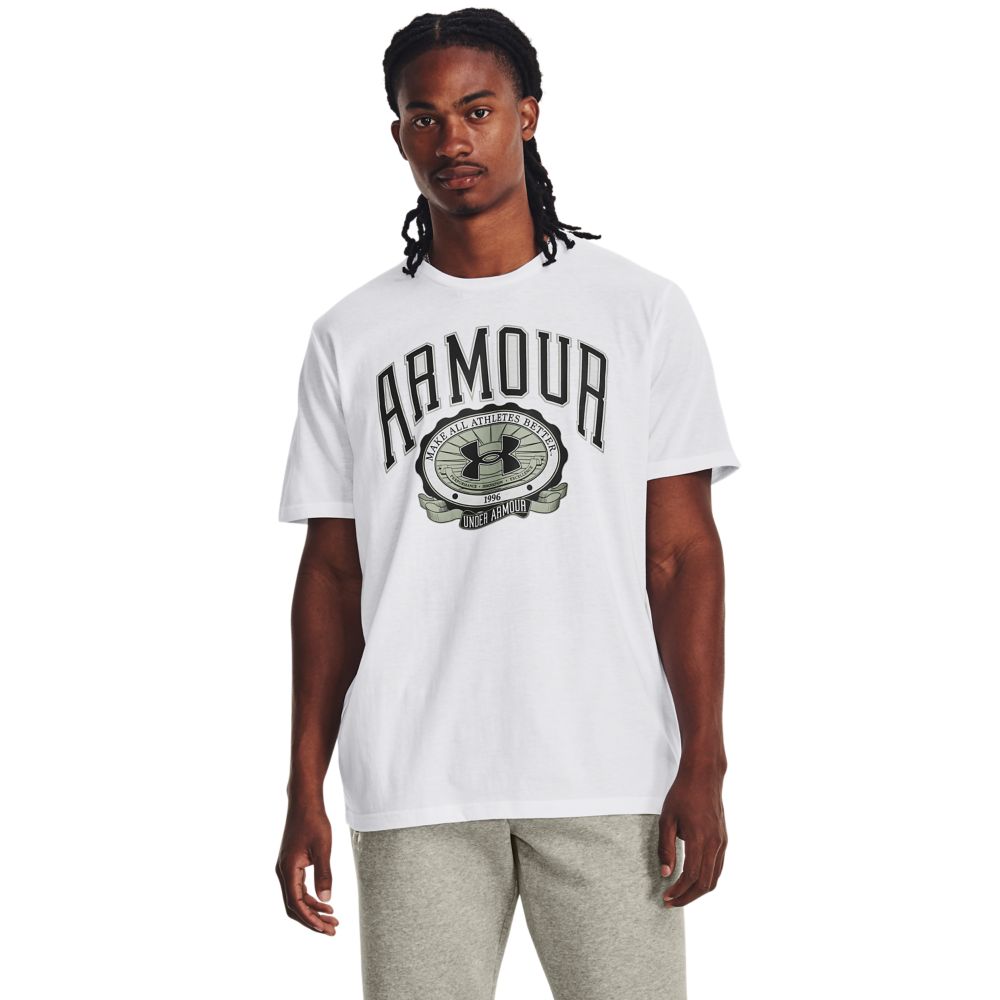UA Collegiate Crest Ss Camiseta Manga Corta blanco de hombre para entrenamiento Referencia:1379537-100 Talla: S