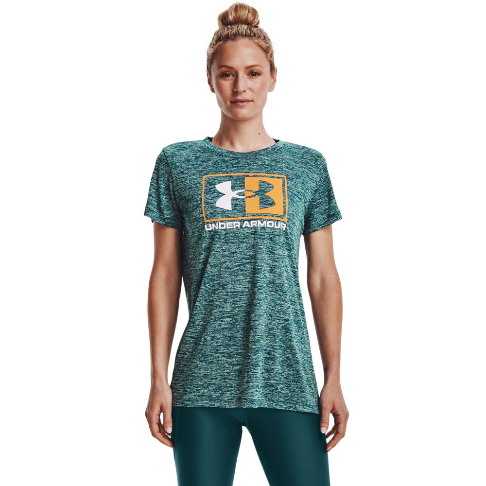 UA H Twist Box Lu Ss Camiseta Manga Corta verde de mujer para entrenamiento Referencia:1373046-716 Talla: S