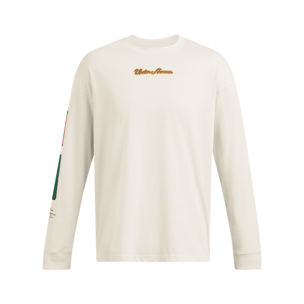 UA M Collegiate Script Hw Ls Camiseta Manga Larga blanco de hombre para entrenamiento Referencia:1388093-110 Talla: S