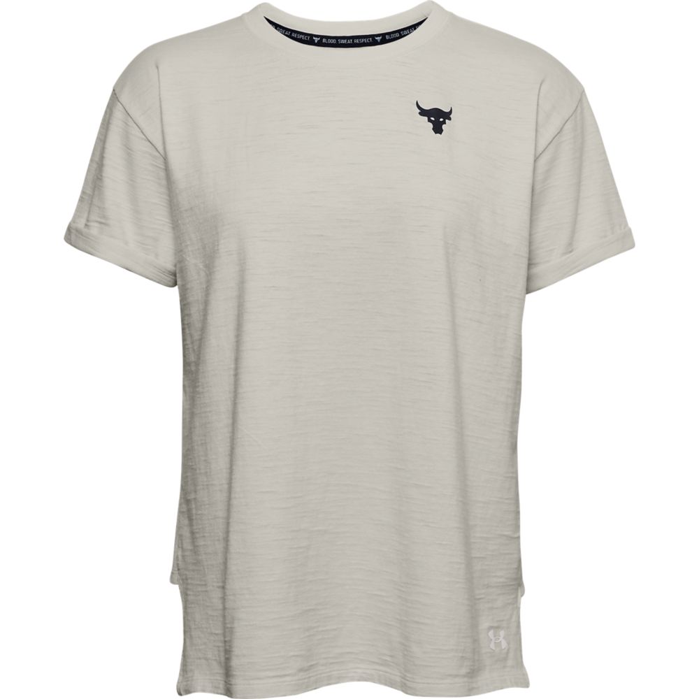 UA Project Rock Cc Ss Camiseta Manga Corta beige de mujer para entrenamiento Referencia:1356960-110 Talla: L