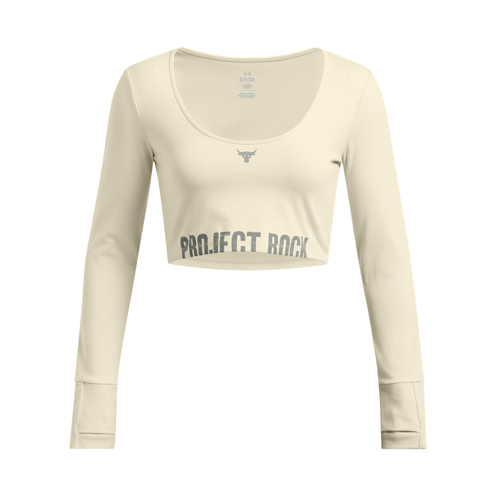 UA Rck W Lg Ls Workout Top Camiseta Manga Larga beige de mujer para entrenamiento Referencia:1386443-273 Talla: XS