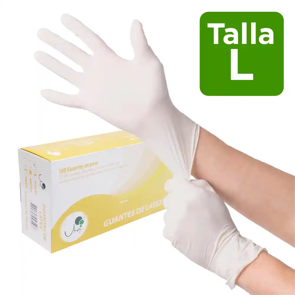 Los guantes de látex desechables son usados comúnmente en entornos médicos gracias a su alta resistencia y protección contra químicos o fluidos, alta sensibilidad al tacto, de gran adaptabilidad, ajuste a la mano y talco. - Cantidad 100 unidades - 100% látex, no estéril - Puño con reborde, talco interior para mayor ajuste - Alta resistencia y flexibilidad - Color Blanco - 5.25 gr, valor típico de un (1) guante para la talla L