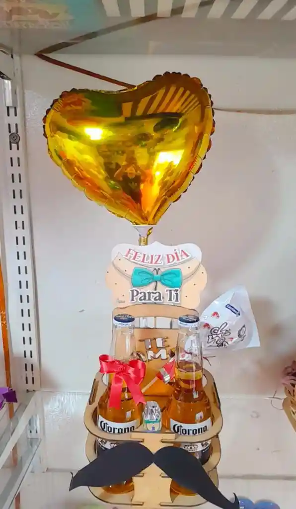 Es un canastico con cervezas Coronas Este tipo de presentación es común en ocasiones especiales o como regalo para eventos como cumpleaños, fiestas, o simplemente para compartir con amigos y familiares.