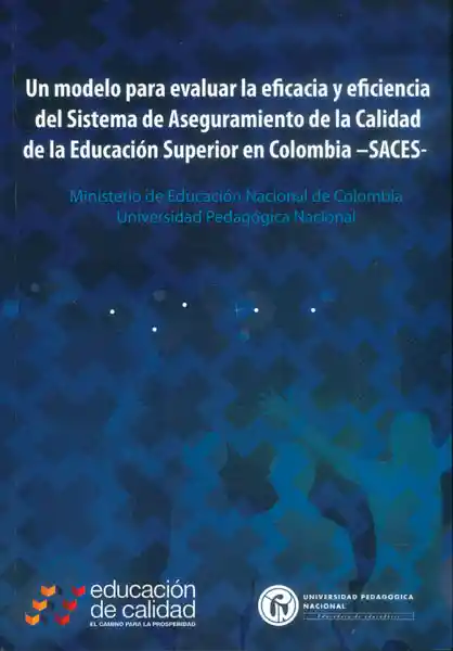 Ministerio de Educación Nacional de Colombia/ Universidad Pedagógica Nacional - Del Sistema de Aseguramiento de la Calidad de la Educación Superior en Colombia Saces. El Presente Documento Integra Los Resultados Obtenidos de la Investigación Llevada a Cabo en el Marco de la Convocatoria Del Arlo 2013 Por el Ministerio de Educación de Colombia Orientada a Fomentar E! Desarrollo de Investigación Sobre la Calidad de la Educación Superior. La Pretensión de Este Estudio Radica en Obtener un Modelo Para Evaluar la Eficacia y Eficiencia Del Sistema de Aseguramiento de la Calidad de la Educación Superior en Colombia es Decir Construir un Esquema o Representación Insertando en él un de Evaluación Que Busque Caracterizar la Forma de Apreciación Las Técnicas y Los Procedimientos Que se Utilizarán Para la Recolección y Análisis de la Información Con el Fin de Valorar la Eficacia y Eficiencia Del Sistema de Aseguramiento de la Calidad de la Educación Superior en Colombia. Para Este Propósito se Contrastaron e Integraron Teorías Estudios y Desarrollos Presentados en Capítulos Particulares y Así Con Aproximaciones Sucesivas se Establecieron Los Lineamientos Teóricos Que Compartimos Con Expertos. ISBN: 9789588650593