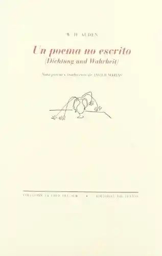 ISBN: 9788481910766 Tìtulo: Un Poema no Escrito (Dichtung Und Wahrheit) Autor: W.H. Auden Editorial: Pretextos Formato: 139 mm x 217 mm