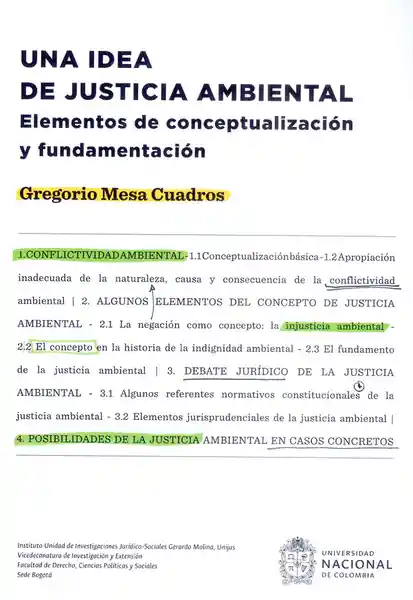 La Teoría de Justicia Ambiental Reconoce la Existencia de Varios Grados de Responsabilidad Por Los Daños Infligidos al Ambiente de Acuerdo Con Las Acciones y Conductas de Sus Responsables. Este Libro Expone Los Fundamentos de Esta Teoría y Elabora el Concepto de Injusticia Ambiental Que Incluye Reflexiones Sobre Cómo Evitarla. Además la Obra Ofrece Una Serie de Elementos Jurídicos Para Poner en Práctica Esta Idea de Justicia Analizando Una Serie de Casos Relacionados Como Las Consultas Populares Sobre Extracción de Hidrocarburos y de Minería la Autorización de Licencias Ambientales y el Reconocimiento de Ríos Como Sujetos de Derechos Entre Otros. ISBN: 9789587834147