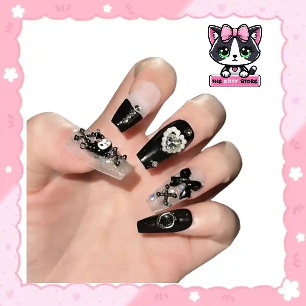 El paquete contiene: juego de 24 puntas de uñas postizas, incluye su pegatina adhesiva, palito de madera y mini lima.