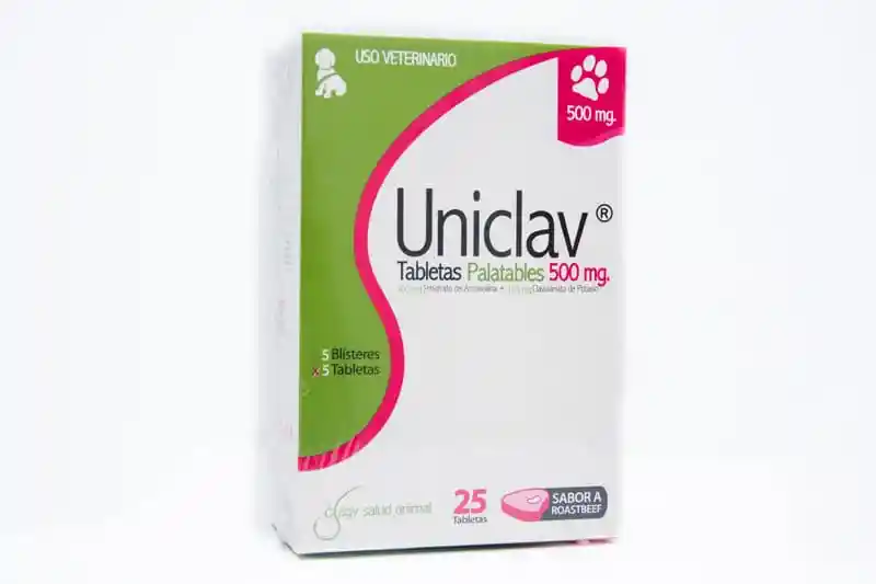 Composición Amoxiciclina base Presentación 500 mg: 400 mg Ácido Clavulánico Presentación 500 mg: 105 mg Indicaciones Antibacteriano de amplio espectro con acción bactericida y acción sobre bacterias productoras de betalactamasas, indicado para el tratamiento de infecciones por gérmenes GRAM+ y GRAM-, en perros y gatos. Dosis: Administración por vía oral dos veces al día así: 1 tableta de 50 mg por cada 4 kg de peso, 1 tableta de 250 mg por cada 20kg de peso o 1 tableta de 500 mg por cada 40 kg de peso.