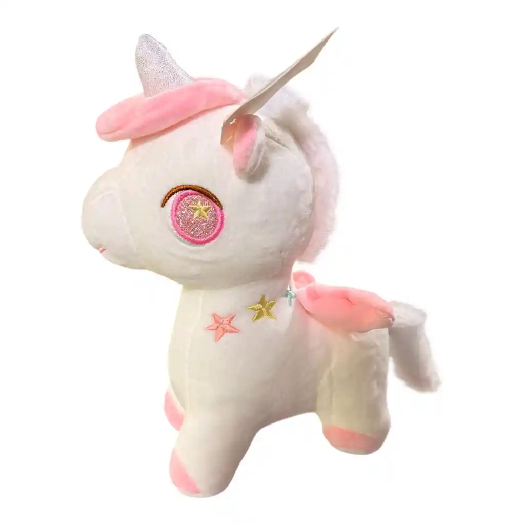 Llena de magia y fantasía cualquier rincón con este encantador unicornio de peluche de 25 centímetros que destaca por sus suaves alas rosadas y delicadas estrellas bordadas que le dan un toque artesanal y único. Este peluche es el elemento de decoración ideal para una fiesta de cumpleaños infantil con temática mística o para incluir como el regalo central en un kit de celebración ya que su textura extra suave y ojos brillantes cautivarán a todos los invitados. Solo viene 1 unidad por pedido y es importante mencionar que los detalles específicos de los bordados o el tono exacto de las alas podrían presentar ligeras variaciones dependiendo de la disponibilidad de la tienda al momento del envío para asegurarte siempre una pieza de alta calidad.