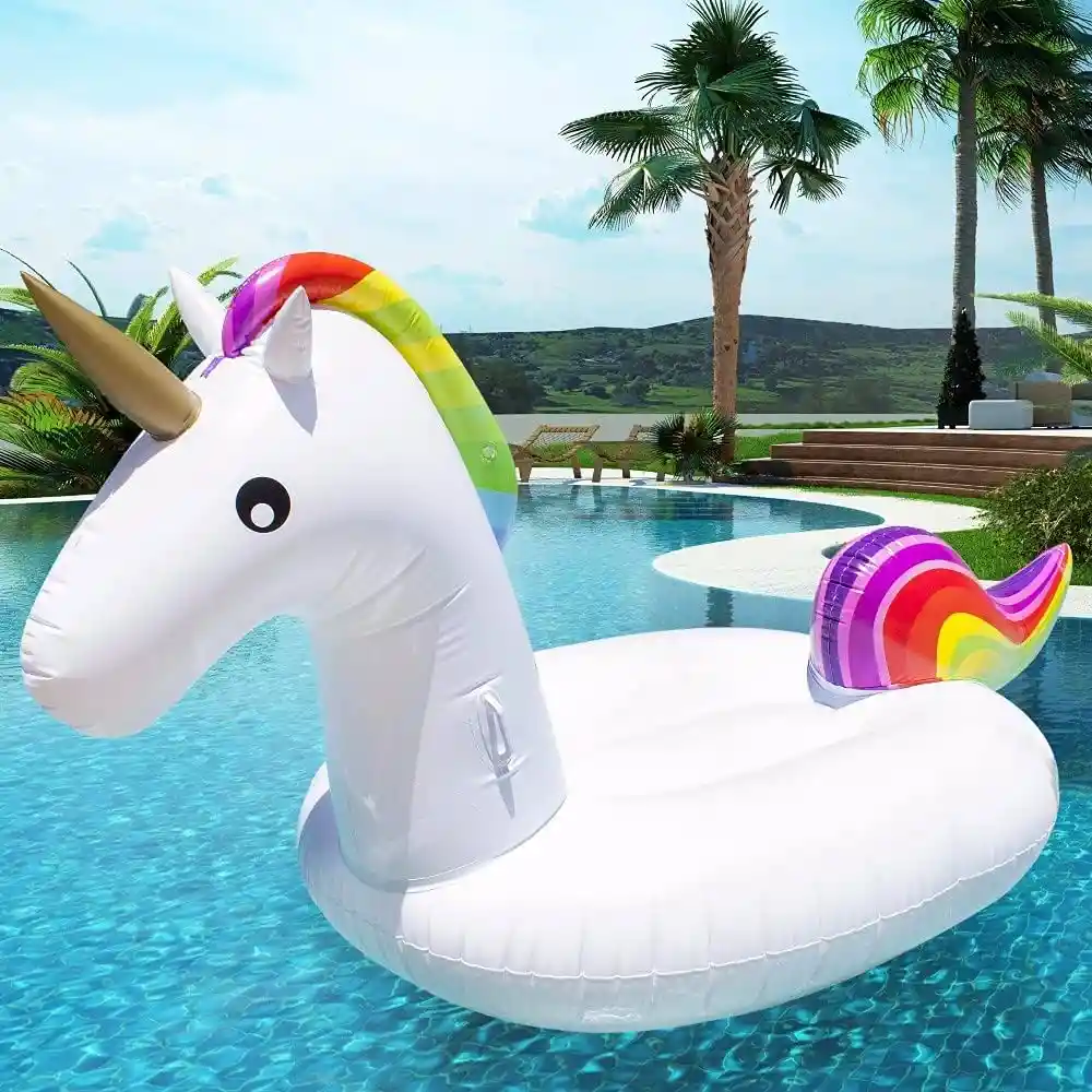 🦄FLOTADOR UNICORNIO - Tamaño mediano 200x100x90cm. Capacidad de peso 100 kg. Es un accesorio y juguetes imprescindibles para juegos acuáticos al aire libre para adultos y niños. Es el mejor regalo de cumpleaños. ¡El refugio perfecto para jugar o relajarse y decorar! 🦄APARIENCIA ÚNICA: finamente elaborado con curvas suaves y la máxima atención a los detalles en colores vibrantes, este flotador de unicornio único es la combinación de elegancia y estilo, toma este adorable unicornio y disfruta con él Fiesta de verano, ¡serás el centro de atención! 🦄SEGURO Y ESTABLE: el flotador de piscina Unicorn tiene dos asas alrededor del cuello para una mayor estabilidad y un mejor equilibrio mientras conduce. Ampliamente utilizado en piscinas, playas, fiestas de viaje o como tumbona. 🦄MATERIAL PREMIUM - Hecho de material de PVC blando de alta calidad, inodoro, no tóxico, duradero, grueso y resistente a la compresión. Y el parche de reparación está incluido. 🦄INFLACIÓN/DESINFLACIÓN RÁPIDA: el puerto de inflación con la integración de la válvula de deflación, tecnología de sellado de primera clase y no es fácil de filtrar. Permite el inflado a través de una bomba de aire de juguete, una bomba eléctrica o un secador de pelo frío, completamente desinflado en segundos con una válvula completamente abierta.