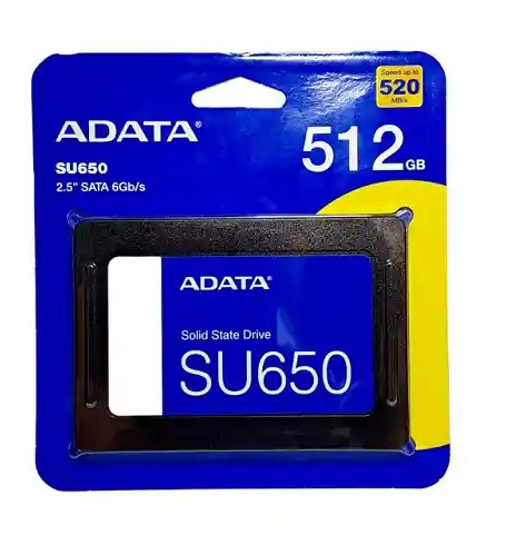 - Unidad de almacenamiento SSD 512GB - Con la Flash NAND 3D, el SU650 ofrece mayor eficiencia. - Rendimiento más rápido: El algoritmo inteligente de caché SLC permite que la memoria Flash NAND funcione en modo de celda de un solo nivel y aumenta el rendimiento - Máximas velocidad de lectura/escritura del SU650 hasta 520/450MB. - Interfaz SATA 6Gb/s -