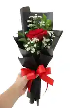 Unidad de rosa roja con gypso y rusco Una clásica rosa roja que representa amor y pasión, ideal para un gesto romántico. Nota: La flor puede ser sustituida dependiendo de la disponibilidad de color y del producto. "Mensaje Personalizado" máximo de 30 caracteres (Dejar el mensaje en el chat, los comentarios no se previsualizan para la tienda, por lo que si se dejan allí no podrá ser incluido).