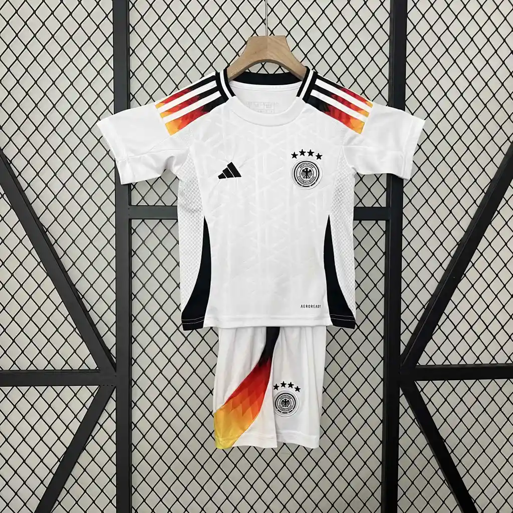 Tallaje normal 👦 Uniforme Alemania 2025/2026 Niño – Talla 10 (Blanco ) ¡Tu pequeño puede vestir como los campeones del mundo! 🏆 El uniforme oficial de Alemania 2025/2026 combina elegancia, historia y espíritu ganador. Con su clásico color blanco con detalles negros , representa la fuerza y disciplina de la Mannschaft, símbolo del fútbol de élite. Fabricado con tecnología Dri-FIT, este uniforme garantiza comodidad, transpirabilidad y ligereza, ideal para entrenar, jugar o animar a la selección alemana. 👕 Características: Uniforme completo: camiseta + short Diseño oficial temporada 2025/2026 Color: Blanco con detalles negros Escudo de la selección de Alemania bordado Tecnología Dri-FIT (mantiene fresco y seco) Material: 100% poliéster de alta calidad Talla: 10 🇩🇪 Perfecto para los pequeños fanáticos del fútbol europeo. ¡Haz que tu hijo vista la camiseta de los campeones y viva la pasión alemana en cada partido! ⚽🔥