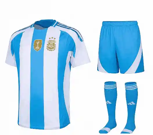 El uniforme de la selección de fútbol de Argentina se caracteriza por su camiseta blanca con tres franjas celestes, pantalón blanco con rectas celestes y medias blancas con detalles celestes. Alternativamente, el uniforme puede ser negro con detalles celestes. La camiseta ha evolucionado a lo largo de los años, pero su diseño básico ha permanecido constante desde su adopción en 1910. En los Mundiales, el uniforme ha sido confeccionado por diversas marcas, cada una con su propio diseño distintivo. Para la Copa Mundial de la FIFA 2026, Adidas ha diseñado un nuevo uniforme que mantiene las franjas verticales en tres tonos de celeste, inspiradas en las camisetas campeonas de 1978, 1986 y 2022, y muestra la insignia distintiva de "1893" como fecha fundacional de la Asociación del Fútbol Argentino.