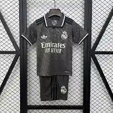 Uniforme del Real Madrid en color Gris con logos bordados, es para niño en talla 14 con logos bordados, camiseta y pantaloneta, tallaje normal, incluye cajita ideal para dar como regalo
