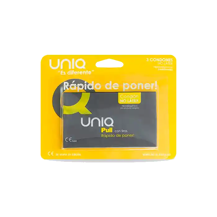 Contiene 3 Unidades. Novedad Desarrollada Por Uniq International, Para Uso Exclusivo Masculino, Similar a Los Condones Tradicionales en su Forma. Tiene Dos Cintas Laterales Para Facilitar y Agilizar la Postura Del Condón. Beneficios: Sistema de Tiras Para Facilitar el Desenrollado. Más Resistente en Presión y Tensión. Sensación Natural (Permite Mayor Sensibilidad). Hipoalergénico. Inoloro, Transparente y Extra Suave. No se Daña en la Billetera. Se Adhiere a la Piel. Permite el Uso de Cualquier Lubricante. Contiene Tres Condones Lubricados y Tres Sachets de Lubricante Adicionales. el Envío se Realizará en un Empaque Que Garantice Completa Confidencialidad de su Contenido