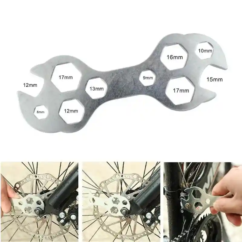 Especificación:La abertura en ambos extremos es de 13 mm y 15 mm respectivamente.Tamaño del orificio interno: 8. 9. 10. 12. 13. 15. 16. 17 mmMaterial: acero galvanizado 45Peso: 50 g