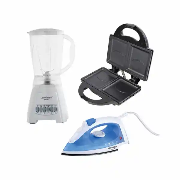 Pack Universal Contiene 3 Unidades. Licuadora 1 Und + Sanduchera 1 Und + Plancha 1 Und.