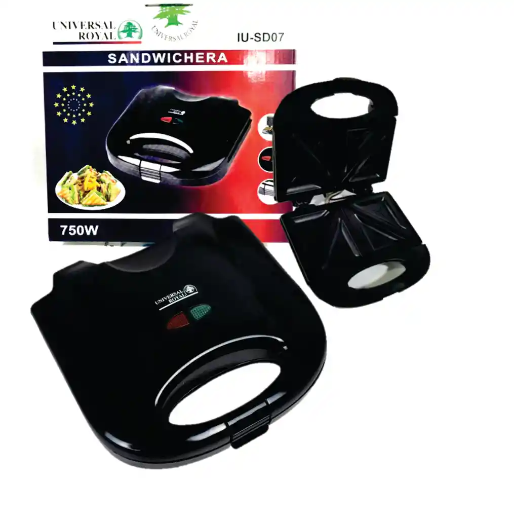 SANDWICHERA 2 PUESTOS UNIVERSAL ROYALNuevas. 100% originales. ideal para el hogar y preparar todo tipo de sandwich. Tiene las siguientes caracteristicas:-Marca UNIVERSAL ROYAL-750 watts de potencia-Indicador visual de encendido/apagado-Planchas con recubrimiento antiadherente en teflon-Fácil limpieza-Sistema de cierre práctico con maniguetas-Patas antideslizantes-Fácil almacenaje- Disponible en color blanco-garantía de 6 meses