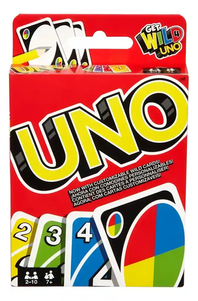 ¡Bienvenid@ a Disho! Tu tienda digital. Productos seleccionados para simplificar tu vida. Envíos a todo Colombia. Las fotos son de referencia. El color y el modelo pueden variar según disponibilidad, sin afectar las funciones ni la calidad del producto UNO es el clásico juego de cartas que garantiza diversión para toda la familia. Esta versión original de Mattel incluye las cartas tradicionales junto con comodines personalizables “Get Wild”, que permiten crear reglas propias y hacer cada partida aún más emocionante. El objetivo es simple: deshacerte de todas tus cartas antes que los demás combinando colores y números, usando cartas especiales para cambiar el rumbo del juego. Ideal para reuniones familiares, fiestas o tardes de juegos. Características: Juego de cartas original UNO de Mattel Incluye comodines personalizables “Get Wild” Para 2 a 10 jugadores Recomendado para mayores de 7 años Partidas rápidas, dinámicas y divertidas Fácil de aprender y apto para todas las edades Contenido: Baraja completa de cartas UNO Instrucciones incluidas GARANTIA por defectos de fábrica. No cubre mala manipulación del producto Todos los costos de devolución por garantía estarán a cargo del comprador. Puedes ver todos nuestros productos en el siguiente link www.disho.co