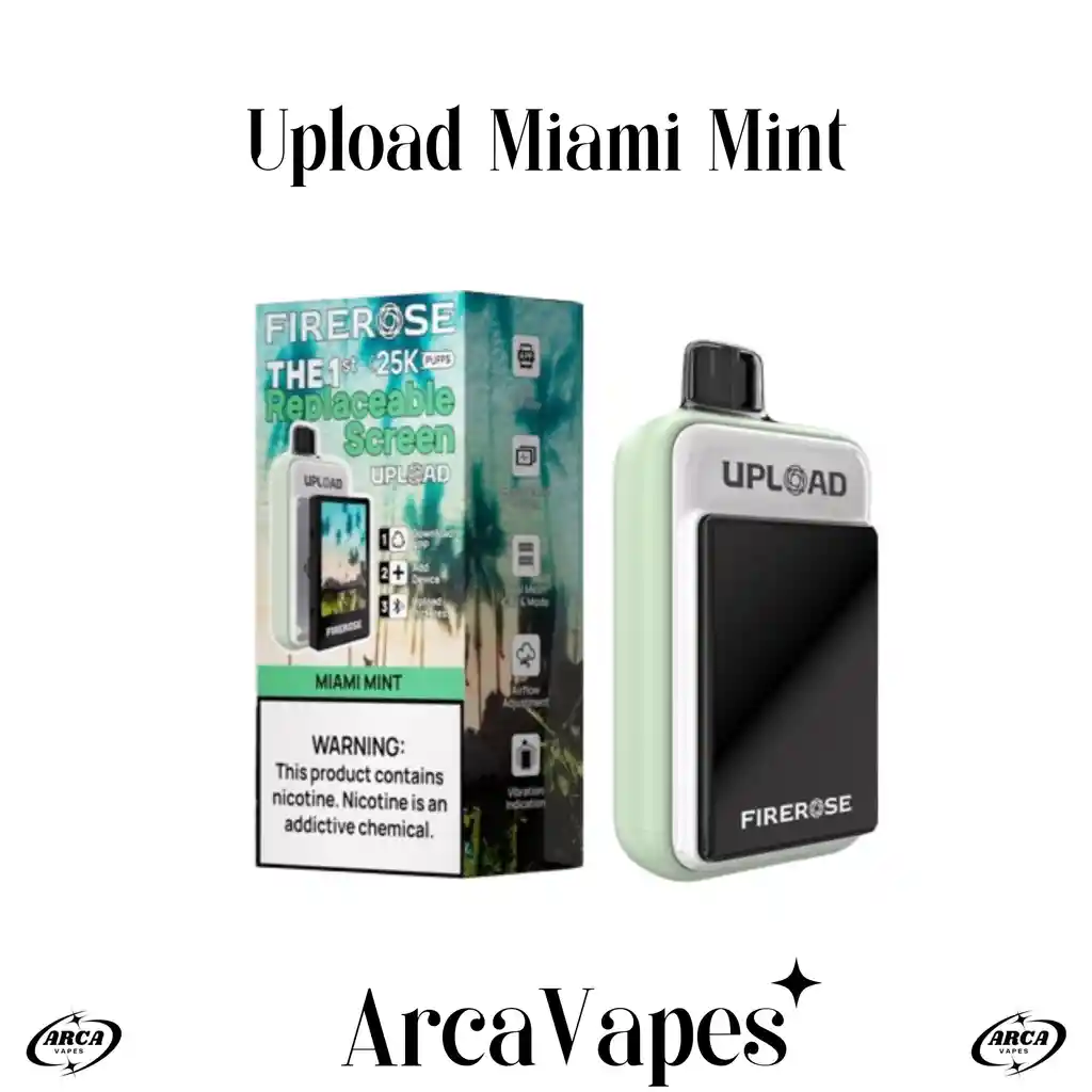 💨 Rendimiento Superior: Hasta 25,000 puffs reales con 20 ml de e‑liquid nic salt al 5%, ofreciendo una experiencia prolongada con golpe de nicotina estable. 🌴❄️ Miami Mint – Sabor Oficial: Menta fresca y limpia con sensación fría tipo brisa de playa, un perfil mentolado suave pero muy refrescante, pensado para quienes aman sabores claros, no dulzones y súper frescos. ⚙️ Tecnología Real del Upload 25K Hasta 25K puffs con calada automática tipo MTL. 20 ml de e‑liquid prellenado con nicotina 5% (50 mg). Batería recargable (aprox. 650–660 mAh) vía USB‑C, optimizada para acompañar la cantidad de puffs. Bobina dual mesh para sabor intenso y vapor suave. Flujo de aire regulable para ajustar la calada más cerrada o más aireada. Dos modos de potencia: Normal y Turbo, para elegir entre calada más relajada o más golpe/vapor. Pantalla HD reemplazable tipo portaretratos, la puedes seguir usando en otros cuerpos Upload. App oficial Firerose Upload para subir fotos/fondos y personalizar la pantalla con tus imágenes. 🎁 Incluye Exclusivo – Condición de Garantía Vape 15K de regalo: ideal como backup o para compartir sin tocar tu Upload Miami Mint principal. Nota importante: el vape de regalo no tiene garantía, solo el Upload 25K principal cuenta con cobertura según las políticas del proveedor/tienda. 👑 Ideal Para Vapers que buscan un Upload 25K Miami Mint con pantalla portaretratos personalizable, alto rendimiento y un perfil de menta fría muy limpio y refrescante, más un 15K extra para la calle, dejando claro que el obsequio va sin garantía.