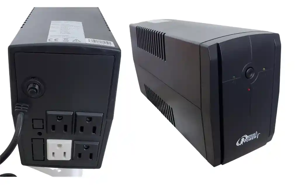 UPS 650VA interactiva American power 4 tomas salida regula y tiene bateria interna. Para protección y soporte de computadores. Garantía 2 años