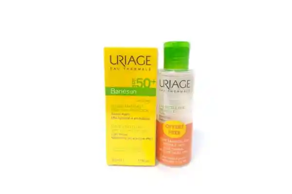 Desarrollado especialmente para pieles mixtas a grasas este fluido matificante aporta una protección muy alta frente a los rayos UVA-UVB. Uriage bariesun fluid matująco-nawilżający spf 50+ (50ml). Woda micelarna (100ml). Packing: Caja