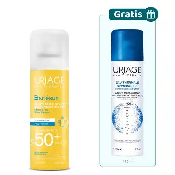 Gratis Agua Termal Reparadora 150 mL. Protege y Repara tu Piel Frente al Sol. La Bruma Spray Bariésun Spf 50 Ofrece Alta Protección Contra Los Rayos Uv Con Textura Ligera y Sin Acabado Graso. El Agua Termal Uriage Calma y Refresca la Piel Tras la Exposición Solar. Perfecto Para Uso Diario o Viajes. Contraindicaciones: Evitar el Contacto Con Los Ojos. No Exponer a Temperaturas Superiores a 50 C ni Perforar el Envase Del Spray.
