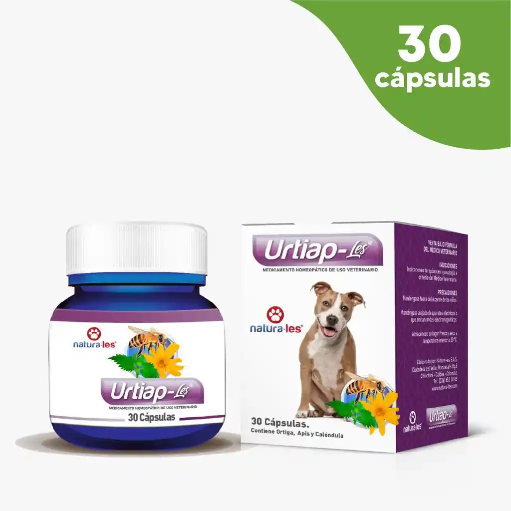 Las dermatitis alérgicas y atópicas de perros son motivo de consulta diaria y su tratamiento es complejo. Detener el prurito es lo que quiere el propietario, pero el tratamiento debe ir más allá del simple uso de corticoides. URTIAP-LES PERROS ES EL COMPLEMENTO PERFECTO EN EL TRATAMIENTO INTEGRAL DE DERMATITIS ALÉRGICAS Y ATÓPICAS. URTIAP-LES DISMINUYE EL PRURITO, DETOXIFICA LOS TEJIDOS AFECTADOS, DESENSIBILIZA Y FAVORECE LA CICATRIZACIÓN. Presentación: frasco de 30 cápsulas. REGISTRO ICA 8964-MV
