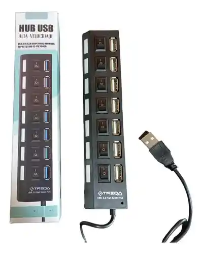 CARACTERÍSTICAS -Cantidad de puertos: 7. -Cable de 22cm de largo. -Versiones de USB compatibles: 3.0. -Tasa de transferencia de datos: 5Gbps. -Sistemas operativos compatibles: Windows Linux macOS. -Con protección contra sobrecarga. Con luz de encendido. Garantía del vendedor: 30 Días por defecto de fabrica.
